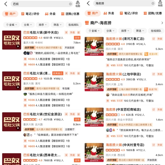 在大众点评,5D调查搜索巴奴发现,其人均消费在火锅商家中已属较高水平,超过了180元/人。而其主要竞品海底捞的客单价,人均消费仅约120元/人。