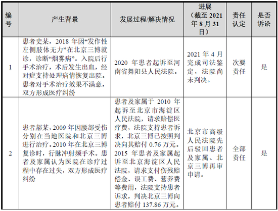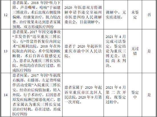 截至2021年8月31日,以上16起医疗纠纷有3起已结案,具体情况及解决进展具体如下: