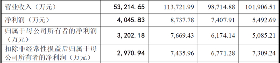 报告期内,公司营业收入分别为101,906.51万元、98,714.88万元、113,721.99万元和53,214.65万元,公司净利润分别为5,492.69万元、7,407.91万元、8,737.78万元和4,045.83万元,保持增长趋势。