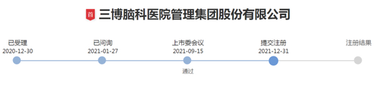 三博脑科早于2020年12月30日递交IPO申请,后于2021年9月15日通过上市委会议审核,并于2021年12月31日提交注册申请。然而时隔14个月,三博脑科仍未完成IPO注册。