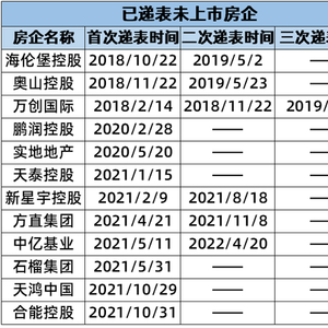 其中不少房企已经二次甚至三次递表,万创国际更是先后四次递表,最后均以失效告终。在万创国际第四次向港交所递交招股书后显示被拒,业内人士分析称,若一家企业的上市申请被港交所拒绝,三年内不可以再递交申请。
