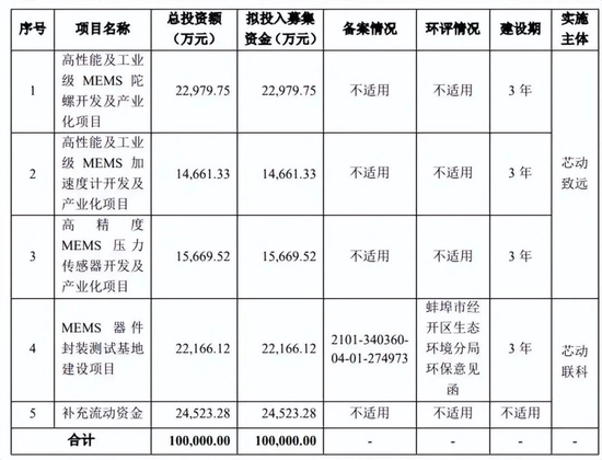 安徽芯动联科微系统股份有限公司(简称“芯动联科”)本次募集资金总额10亿元,这笔钱主要用于投资四个项目(合计7.5亿元 )和补充流动资金(约2.5亿元)。