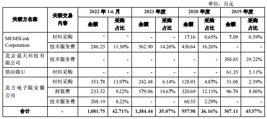 根据约定,金晓冬、毛敏耀和宣佩琦等3人为公司提供技术咨询服务。2019年公司向昆天科技支付技术服务费350.85万元,2020年、2021年和2022年1-6 月向MEMSLink分别支付430.64万元、562.90万元和286.25万元,人均所得不低于高管薪酬。