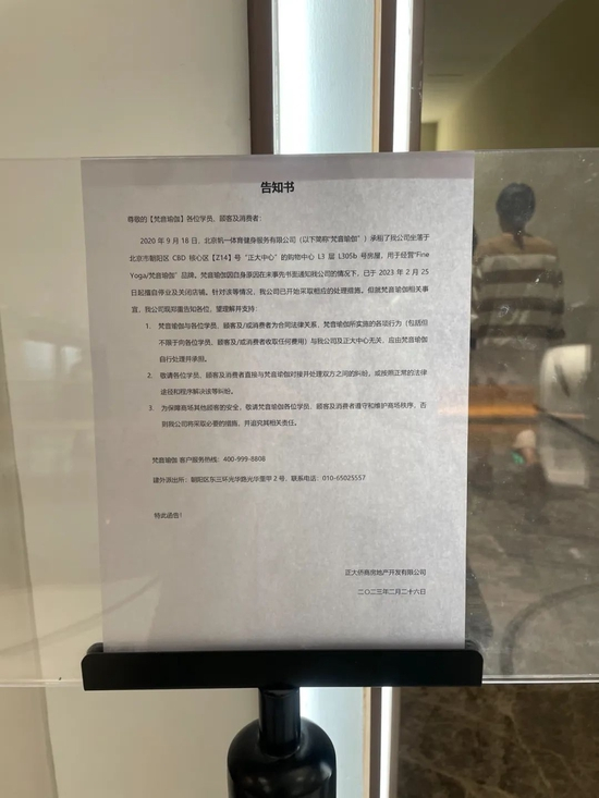 〓 据了解,北京的梵音瑜伽正大店还欠着大厦几十万物业费。