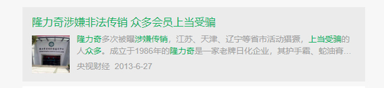 更早一点,其实在2013年6月,央视财经就曾发布过一篇《隆力奇涉嫌非法传销 众多会员上当受骗》的文章。