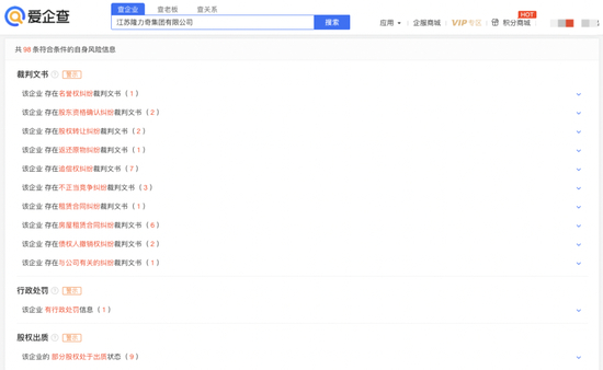 天眼查数据显示,1月12日,隆力奇集团在潍坊农村商业银行的2000万股权,和海阳市佳旭房地产开发有限公司的1.3亿股权,合计1.5亿被冻结,冻结时间为2023年1月-2023年7月。