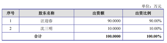 2005年4月21日,汪迎春与沈三明约定共同出资100万元设立福贝有限,其中汪迎春出资90万元,沈三明出资10万元。