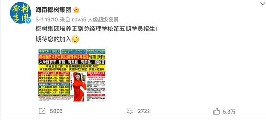 2021年3月,椰树集团曾因在公司高管招聘海报上使用了“有车、有房、有高薪、肯定有美女帅哥追”等夸张的宣传字眼,引发网友热议。此举引来海南省市场监管局对广告行为进行立案调查并罚款40万元。