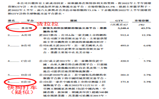 根据弗若斯特沙利文的资料,2022 年,货运代理及中间商参与了跨城市场分部交易总量的约80%,而同城交易的该项比例为10%。货运代理及中间商的大量参与,意味着在提升效率,用户体验及节约成本的方面仍有巨大提升空间,倘平台能够让司机直接与商户进行交易,而非通过中间商进行交易,则平台的盈利能力将有较大的提升空间。