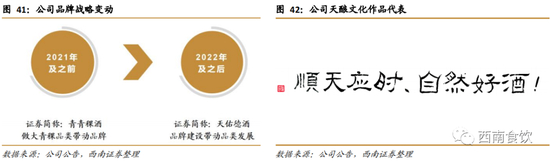 聚焦品牌建设,抢占品牌高地。高端白酒具有较强的品牌壁垒,品牌是高端产品的核心竞争力。2022年上半年,公司证券简称由“青青稞酒”变更为“天佑德酒”,标志着公司战略重心将由青稞酒品类推广,转向聚焦以品牌建设带动品类发展。公司持续推进品牌价值挖掘,围绕“天酿文化、圣地文化、青藏文化”赋予天佑德更加丰富的内涵,提高其品牌高度与厚度,实现了文化价值挖掘对产品价值的赋值。“天人合一,以德治酒,醇醴天然,回馈天地”的酿酒文化正逐渐积聚为其品牌势能,逐渐构筑其高端化、全国化的核心驱动力。