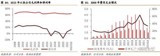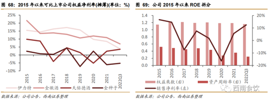经营势能逐渐增强,降费增利空间大。公司聚焦中端、次高端,持续推进产品结构升级,伴随着中高端系列占比的持续提升,产品结构不断优化,毛利率将得到进一步提升。公司调整销售费用构成,降低终端门店的固定陈列费,提升变动费用占比,有效实现销售费用支出和营收增长的良性互动,销售费用支出更加科学高效,可带动销售费用率进一步下降。随着公司毛利率的提升和三费的有效管控,叠加积聚起的经营势能不断释放,规模效应下费用率将持续边际递减,净利率提升弹性十足。