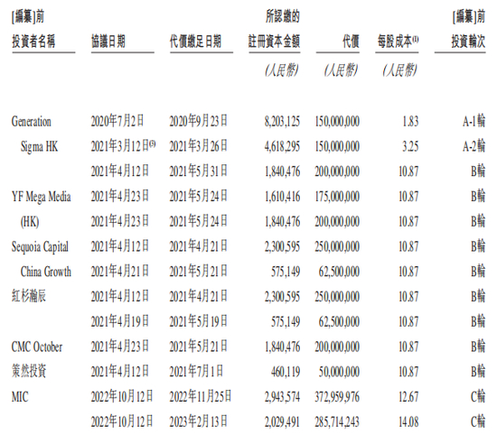 十月稻田成立十数载,直到2020年才开启首轮融资。当年9月,启承资本通过Generation Sigma HK向十月稻田投资1.5亿元,并于A-2、B轮融资中连续两轮持续加注,三次合计投资5亿元。递表前,作为最早投资方的启承资本持有12.49%的股份,为最大外部机构投资方。