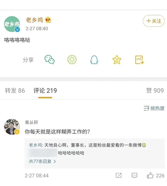 老乡鸡的官博运营,也被网友评为“全网最轻松运营。”
