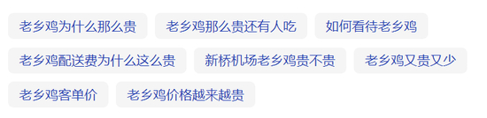 在网页上搜索“老乡鸡 贵”,能检索到四百万条相关信息。