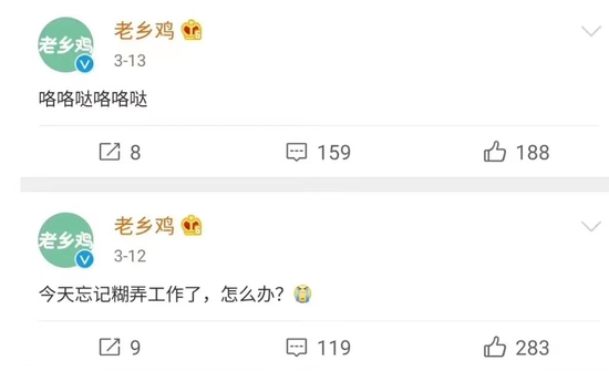 关注老乡鸡官博的细心网友不难发现,这家品牌的官博,每日任务就是不定时发送一条“咯咯哒”微博,完事就下班。