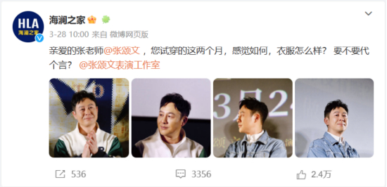一个多月前,海澜之家隔空喊话邀请张颂文代言,随后不久,海澜之家又发布了模棱两可的言论,疑似宣布张颂文已经成为海澜之家的代言人,但因海澜之家挪用张颂文的路演图、P图审美不佳又受到了观众的质疑。彼时张颂文始终没有回应,而当日晚海澜之家删除了代言微博,两者后续也未出现公开互动。这种行为被不少网友认为是道德绑架。