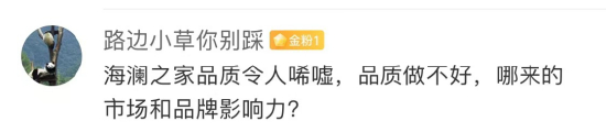 这似乎证明着,即使签下了如今十分受观众喜爱的演员,海澜之家在消费者眼中的印象也难以被扭转,有网友质疑道,“品质做得不好,哪来的市场和品牌影响力?”