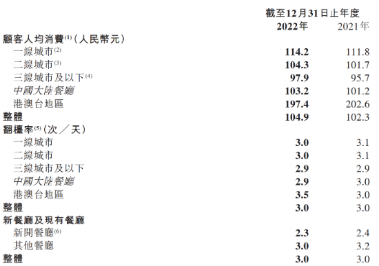 数据显示,2019年至2021年,海底捞分别新开门店308家、544家、421家,特别是在疫情发生的第一年,海底捞新开业门店创新高。但与之相对的是,海底捞翻台率的下跌,从2019年的4.8次/天大幅下滑至2020年的3.5次/天,2021年进一步跌至3.0次/天。