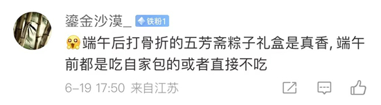 有消费者认为粽子的时令强,端午节过了之后价格腰斩,那时候才会买五芳斋粽子、有消费者认为五芳斋的粽子质量不佳、如有霉味、夹生等等,更有消费者质疑五芳斋的价格太贵。