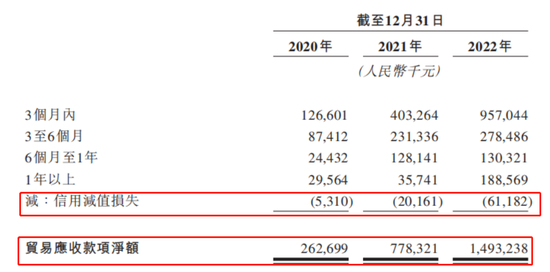 从《招股说明书》可以看到,近3年,经营活动净现金流一直为负且近2年一直维持在每年8亿元左右的净流出,公司经营活动一直未能为公司创造出新鲜血液。笔者了解到,公司近年贸易应收款开始大幅增加,年复合增长率达到138%,远超收入和毛利的增长,且长账期和信用减值损失的绝对数值也在快速增大。货款难收,坏账增加,这些负面因素最终都导致了公司经营回款情况的恶化。