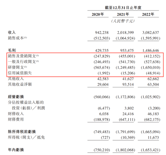 近3年,第四范式的研发开支增长明显,分别为5.66亿元、12.50亿元、16.50亿元,研发开支长期占据营业收入的大半壁江山,年复合增长率高达70.79%。同时,2022年公司的1917名员工里,研发人员占了1420名,占比高达74%,公司每4名员工里就有3名是研发人员,“高薪养研”也是公司研发支出猛增的原因之一。