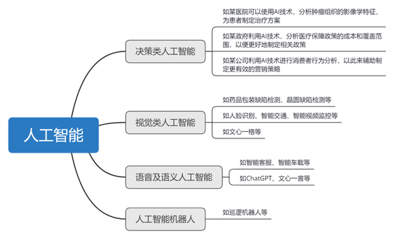 通俗来讲,人工智能是“通过智能化的机器帮助人解决问题”。目前该行业主要分为四大领域。各领域及其应用示例如下图:
