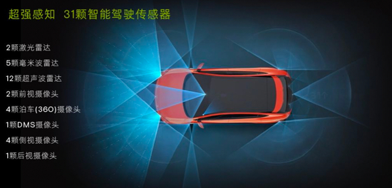 在硬件层面,它搭载了包括激光雷达在内的 31 个高性能智驾传感器、总算力高达 508 TOPS 的双 Orin-X 芯片。