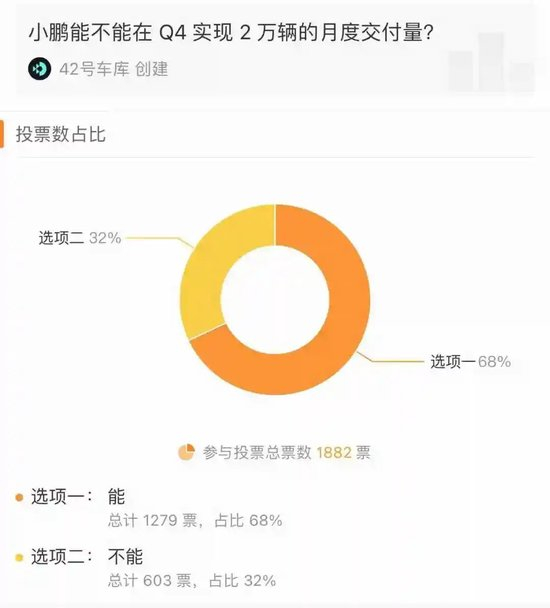 毕竟,在 5 月份的财报电话会议上,何小鹏曾经表示,小鹏汽车将在第四季度实现 2 万辆的月度交付量,其中 G6 要承担关键的交付量任务,而且要达到 P7 全系交付量的两倍,这并非是容易之事——但是,根据我们的最新微博调查,有将近 70% 的投票者认为,小鹏能够在 Q4 实现 2 万辆的月度交付量。