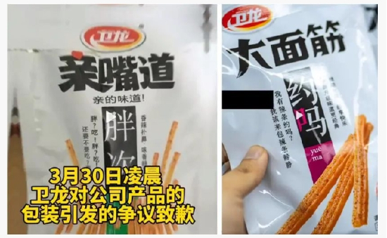 卫龙在包装方面也曾经翻过车。2022年3月,卫龙产品外包装广告语被质疑属于低俗营销,打色情擦边球,引发广泛关注,一度上了微博热搜,话题阅读次达到数亿。随后,卫龙出来道歉,称要停止有争议文案包装的生产,同时进行版面文案及设计的优化。