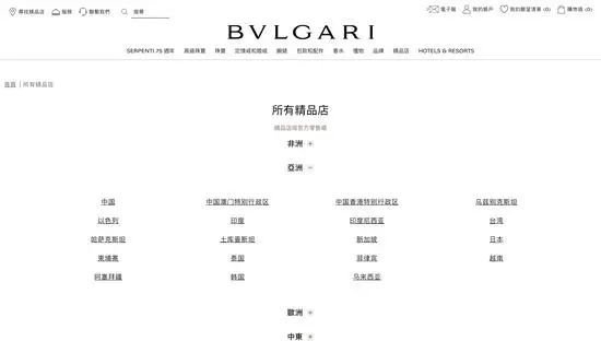 据界面新闻,网友指出的问题并非出现在宝格丽中国大陆官网,而是在宝格丽台湾地区和宝格丽国际官方网站上。点击这些区域性网站左上角的“寻找精品店”,或是“Find a Store”进入,都能找到”所有精品店”或“All Stores”页面。