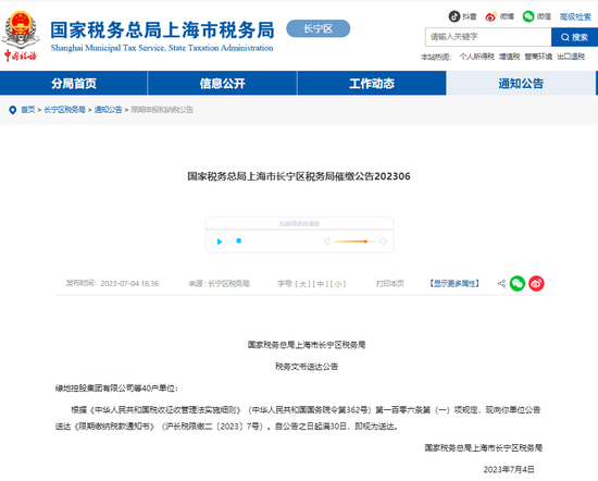 旗下56家公司票据逾期被公示 绿地控股集团欠超千万增值税