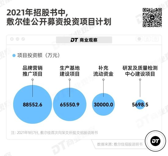 招股书显示,本次公开募集到的资金,只有3%将用于研发及质量检测中心建设项目,46.7%都将投入到品牌营销推广的项目建设。