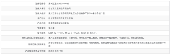 如敷尔佳医用重组Ⅲ型人源化胶原蛋白贴,并非是补充胶原蛋白的护肤品,药品监管局的公开信息显示,其用途是“通过在皮肤表面形成保护层,起物理屏障作用,为创面提供愈合的微环境,促进创面愈合;适合于人体小创口、擦伤、切割伤等浅表非慢性创面及周围皮肤的护理”。