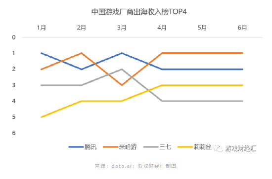 根据data.ai数据,三七2023年1-6月出海收入排名稳居TOP4。粗略估计,三七出海收入仅次于腾讯、米哈游、莉莉丝,已经赶超网易。
