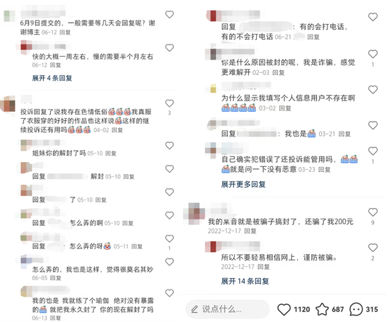 而那些主动联系网友进行解封的“黑社会”,也无法被证明与平台有关。有的人可能只是盯着被封号的用户,想讹一笔钱。王悦称,自己知道的被骗案例从几十块到几千块不等,所以一直在和别人强调别信花钱解封的事;如果确实在拿钱办事,那就是身后黑灰产的问题了。