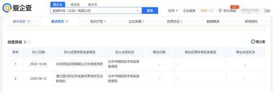 脱单大学也获得了天使轮融资,但这个项目的运营公司脱单科技目前则处于经营异常状态,慕岩在这家公司的持股也已全部被冻结。