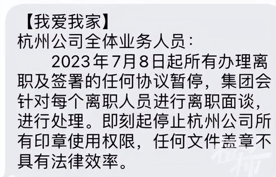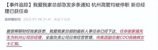 随后我爱我家发出沟通函,承认遭受不正当竞争,自身利益被侵犯,迫不得已出于自卫才进行的人员调整。并任命原天津公司总经理谢加强担任杭州公司总经理一职。