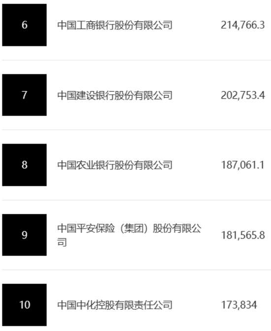 在盈利能力上,工行以535.89亿美元的净利润位居第一,建行农行依次为第二、第三,台积电和腾讯则位列第五、第六。