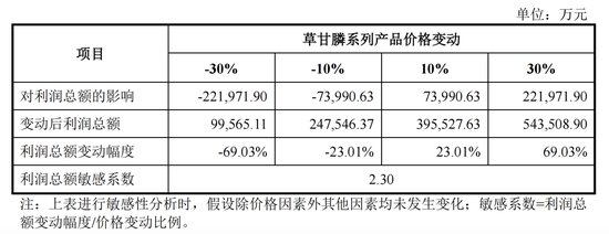 福华通达称,以2022年经营业绩为基础进行测算,当草甘膦系列产品价格向下波动10%、30%时,公司利润总额将分别减少23.01%、69.03%.