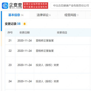 天眼查显示,在2020年11月16日,北京康养的大股东从付红英变更为康和信,企业类型从自然人独资变更为法人独资。