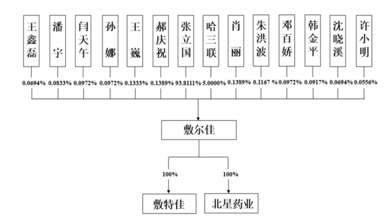 张立国,男,中共党员,汉族,1964 年出生,中国国籍,无境外永久居留权,本科学历,执业药师,高级工程师。1986 年 9 月至 1989 年 5 月,任黑龙江省干部疗养院药剂师;1989 年 5 月至 1992 年12 月,历任哈药集团制药五厂生产调度、车间技术主任;1992 年 12 月至 1996 年 5 月,任黑龙江省中医药开发有限公司部门经理;1996 年 5 月至今,任黑龙江省文策科技有限公司执行董事;2017 年 11 月至今,任敷尔佳董事长、总经理;2019 年 4 月至今,任敷特佳执行董事兼总经理;2021 年 2 月至今,任北星药业执行董事。自设立至今,发行人的控股股东及实际控制人未发生变化。