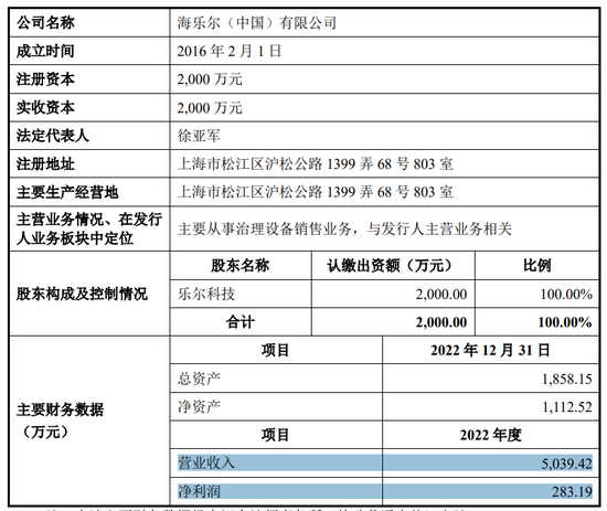 2020年8月14日,乐尔环境子公司乐尔科技收购徐亚军旗下海乐尔(中国)100%股权,转让价为0元。当时,它的资产状况如何,没有披露。但在2022年,海乐尔总资产1858万元,净资产1112万元,营收高达5039万元,净利润283万元。这笔交易,是否存在徐亚军有意做高乐尔环境的嫌疑。
