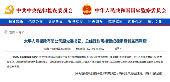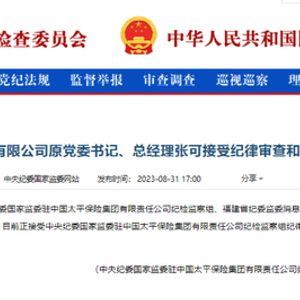 8月31日,据中央纪委国家监委驻中国太平保险集团有限责任公司纪检监察组、福建省纪委监委消息,太平人寿保险有限公司原党委书记、总经理张可涉嫌严重违纪违法,目前正接受中央纪委国家监委驻中国太平保险集团有限责任公司纪检监察组纪律审查和福建省龙岩市监察委员会监察调查。