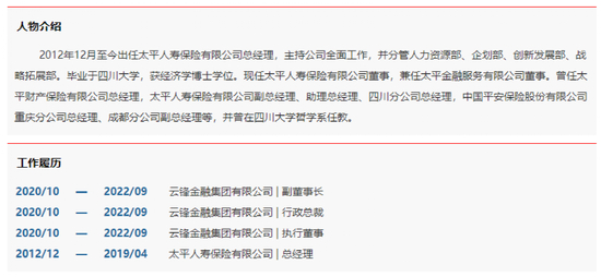 公开资料显示,张可毕业于四川大学,经济学博士学位,高级财务管理师。张可自1993年加入保险业,先后供职于中国平安和中国太平,并担任重要岗位,在保险行业有着二十余年的从业经历。