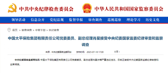 在张可被查之前,太平集团党委委员、副总经理肖星也被查。7月18日,中央纪委国家监委宣布,太平集团党委委员、副总经理肖星涉嫌严重违纪违法,目前正接受中央纪委国家监委纪律审查和监察调查。