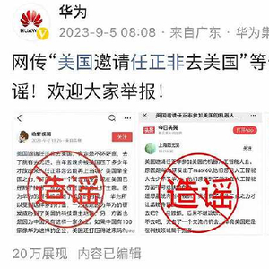 近日,多家社交平台出现“美国邀请任正非去美国”的相关言论。对此,华为官方账号今日发文称,网传“美国邀请任正非去美国”等信息,纯属造谣!