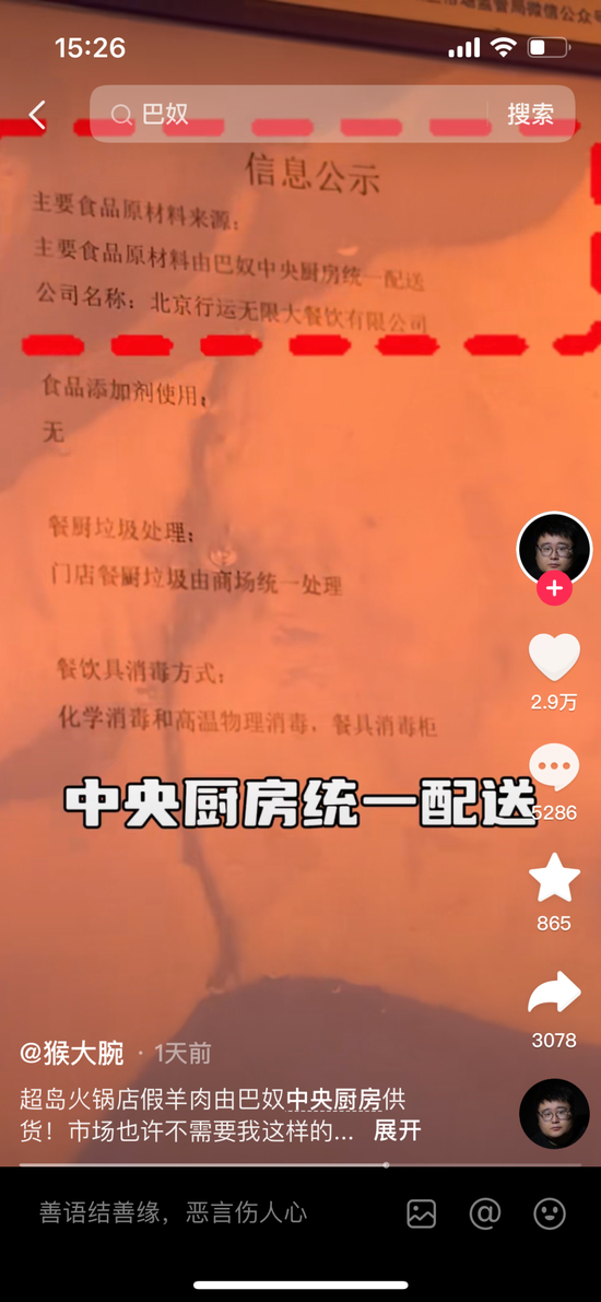 然而根据双方的最新声明,超岛的羊肉卷并非来自巴奴中央厨房。