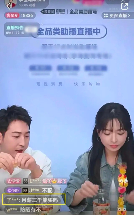 于是,一部分被激怒的网友跑去李佳琦直播间,学他阴阳怪气“月薪三千能买吗?”“工作不努力,不配买”……