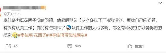 还有网友表示,李佳琦天真地以为普通人只要足够努力就能涨工资、赚足够多的钱,一副不食人间烟火、慨叹何不食肉糜的形象就此建立。