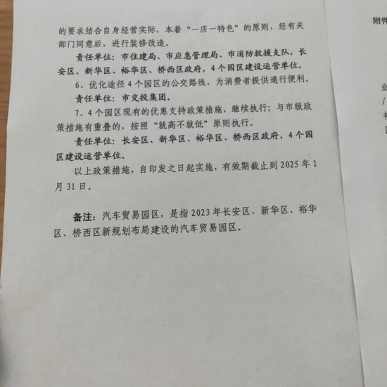 据国际汽车贸易园区的一位经销商反映,6月中旬,他们接到长丰街道办的告知函,被告知长安区的所有4S店必须8月底之前搬迁整治完毕,7月4日,他们接到了长安区规划局、住建局、城市管理综合执法局、公安分局、市场监管局和消防救援大队联合下发的通知,让他们自接到通知30日之内自己拆除,过期不拆的,“有关部门将依法进行拆除”。